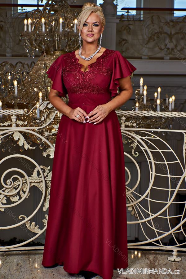 Women's Plus Size (42-46) Long Elegant Party Sleeveless Dress POLISH FASHION PMLBC23265-10 Wine 38