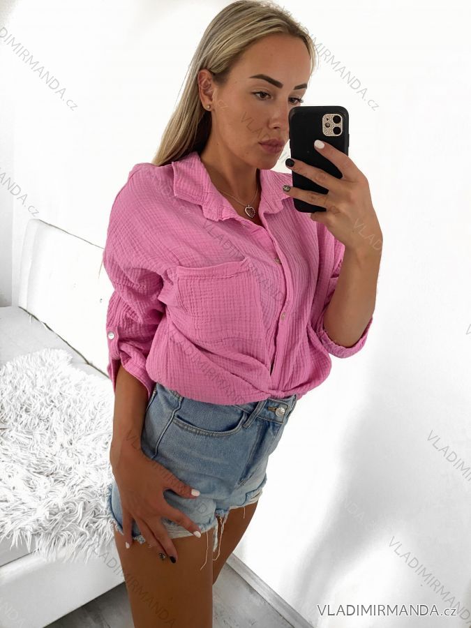 GOODS (120469) > Women's clothing (81597) > Shirts and blouses (3746) > Women's Plus Size Long Sleeve Muslin Shirt (L/XL/2XL ONE SIZE) ITALIAN FASHION IMWP232488/DU