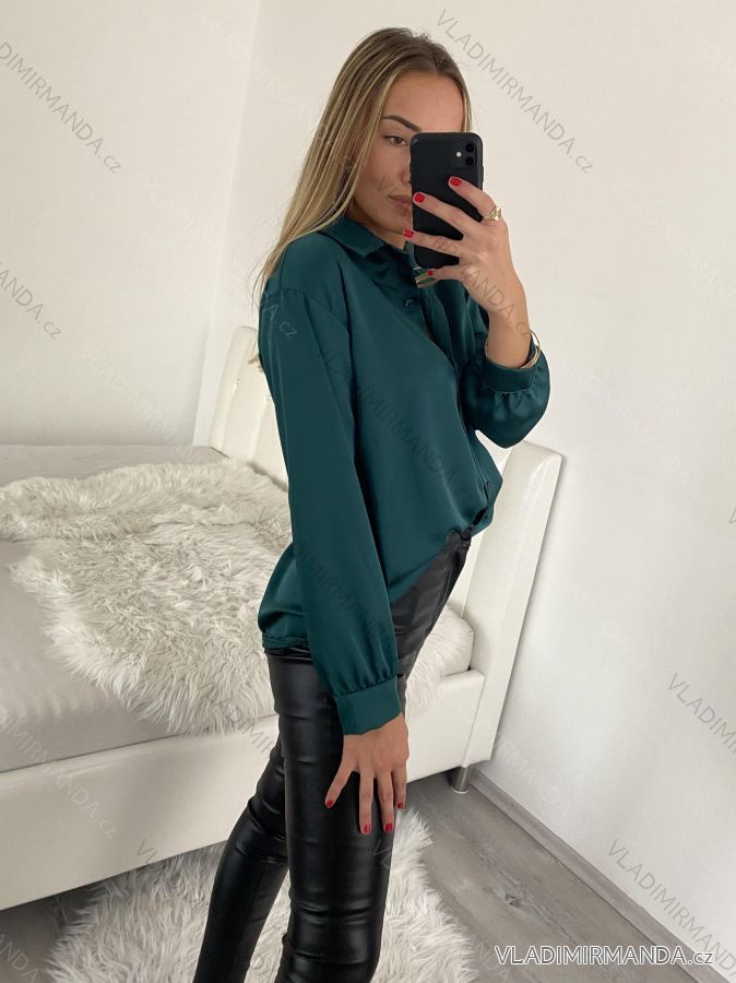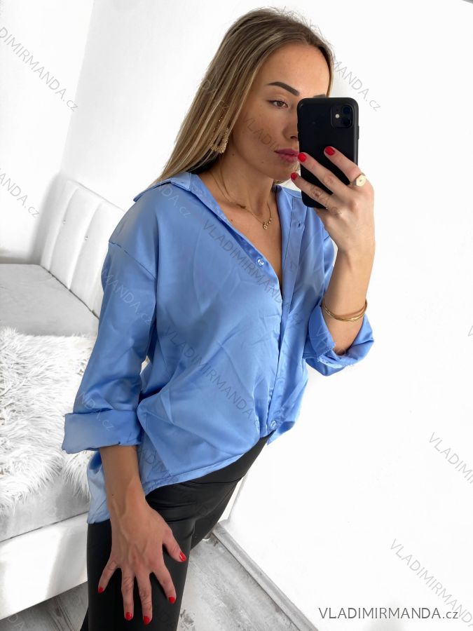 Women's Satin Long Sleeve Shirt (S/M/L ONE SIZE) ITALIAN FASHION IM322560 M / L red