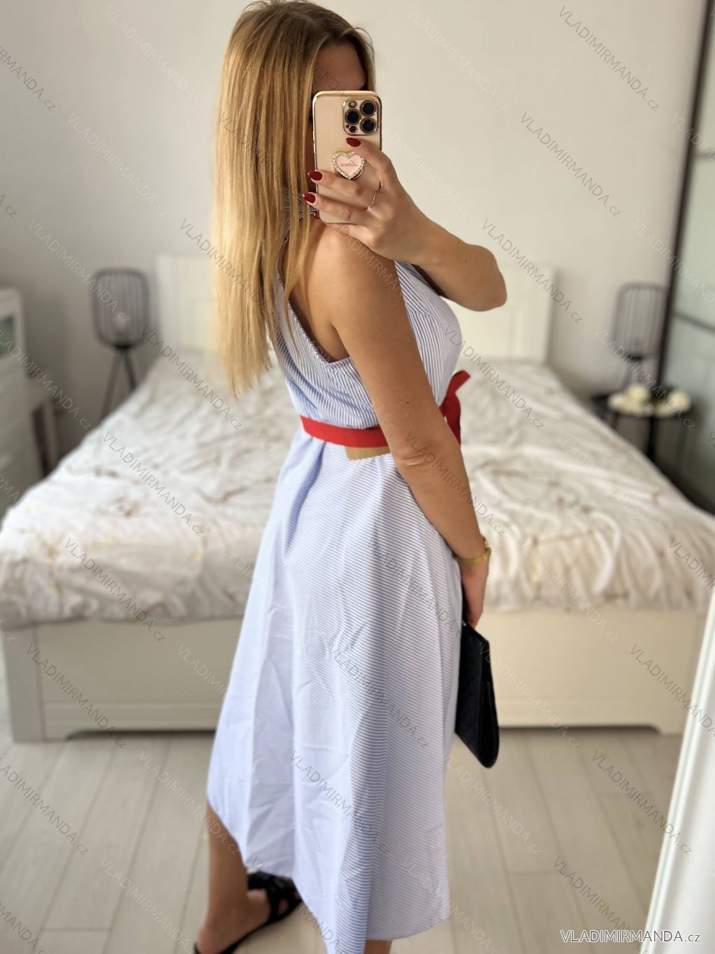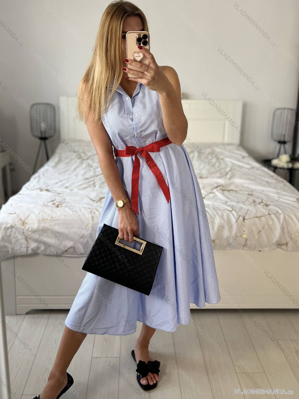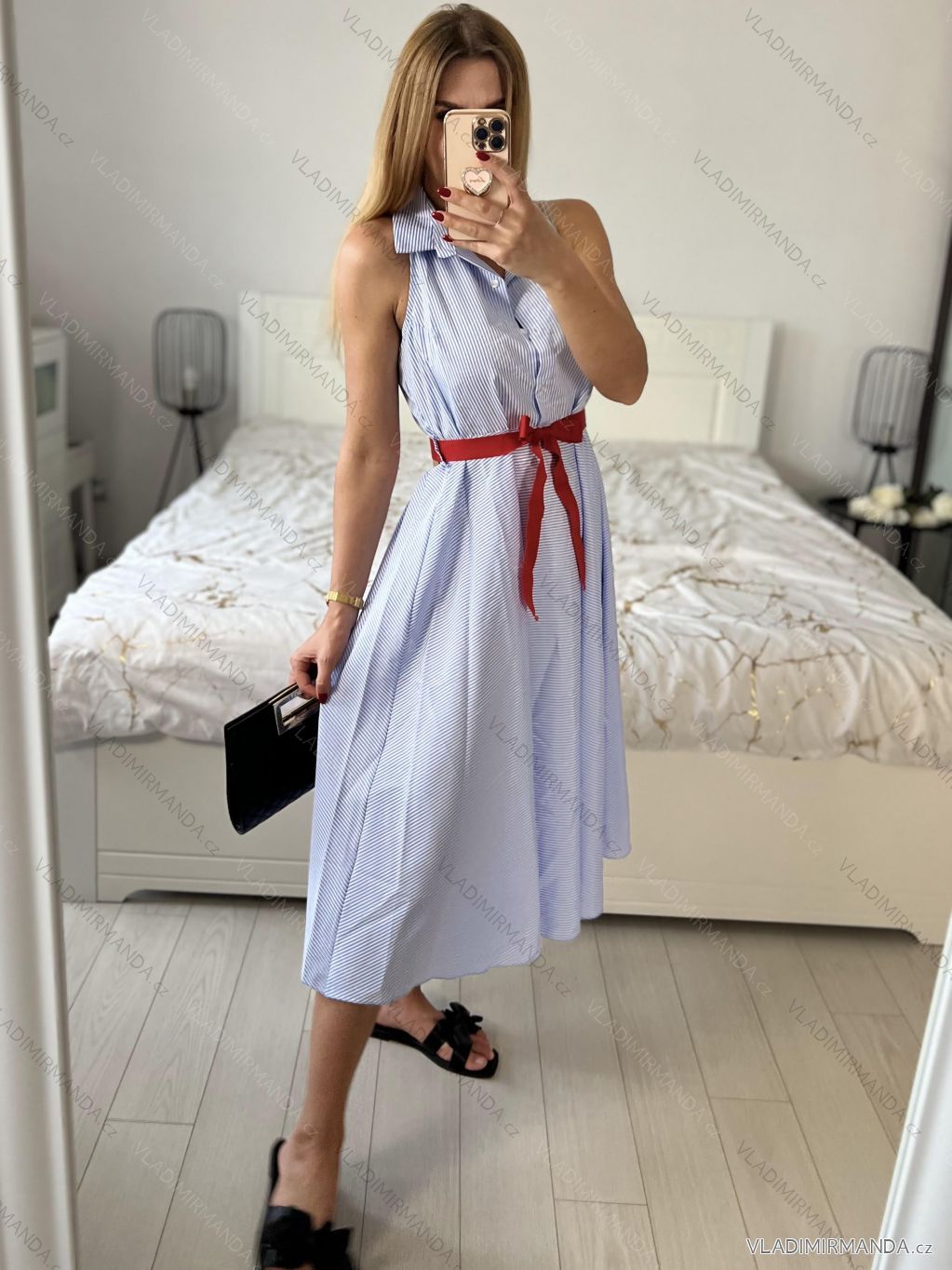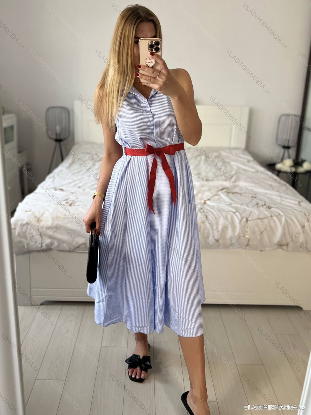 Women's Striped Sleeveless Long Linen Shirt Dress (Uni S/M) ITALIAN FASHION IMM24BR8444R/DUR S/M Blue