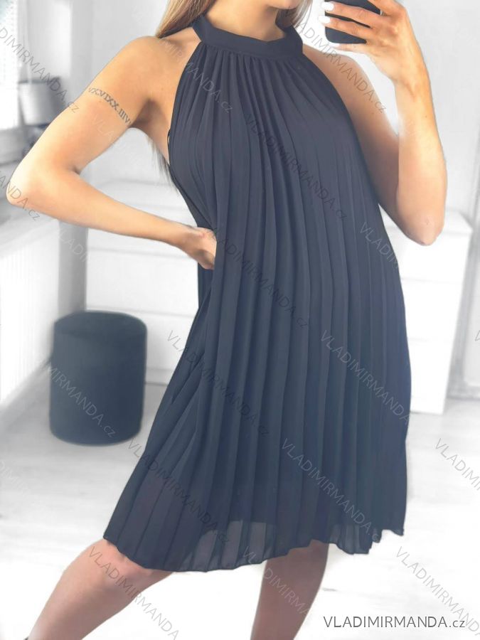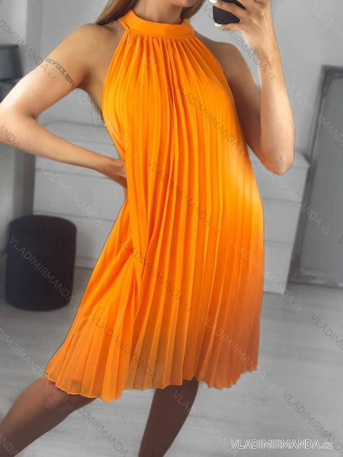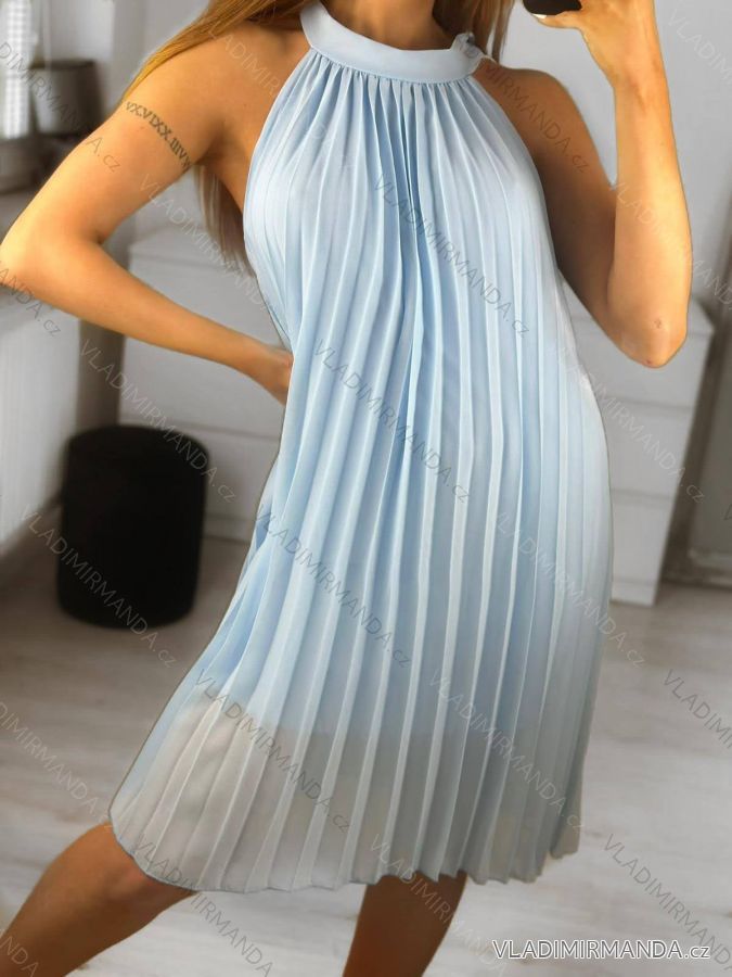 Women's Summer Pleated Chiffon Sleeveless Dress (S/M/L ONE SIZE) ITALIAN FASHION IMWY231072/DU M/L Beige